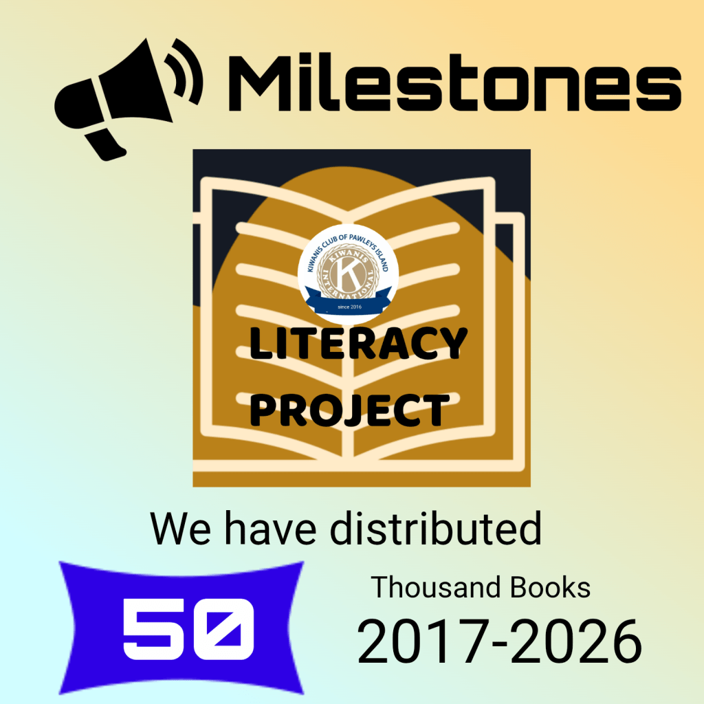 The Kiwanis Club of Pawleys Island Literary Project is dedicated to improving the literacy rate of children within the communities in Georgetown County. The literacy project started in 2017 as a much smaller project and has now grown into what it is today. We distribute 3 books each year, to all children pre-k through 3rd grade in the Georgetown county elementary schools. This equates to 15 books distributed to each child before they leave elementary school. Through this initiative it is our goal to help promote literacy and a love of reading at a young age. By supporting our fundraising efforts, you can help us provide the tools and resources necessary to help children succeed.